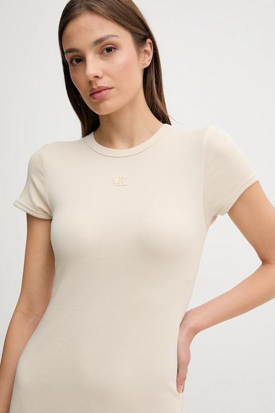 Это платье из коллекции Calvin Klein Jeans выполнено из тонкого, высокоэластичного трикотажа. Модель выполнена из дышащего материала с высоким содержанием хлопка. - Приталенный крой, подчеркивающий силуэт. - Модель без подкладки. - Круглый ребристый вырез. - Короткий рукав. - Модель без застежки. - Вышитый логотип бренда на груди. - Длина: 90 см. - Ширина под мышками: 42 см. - Ширина талии: 36 см. - Размеры указаны для размера: S.