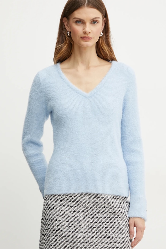 Этот свитер из коллекции Morgan выполнен из эластичного трикотажа средней плотности. Он выполнен из эффектного мерцающего материала с металлизированной нитью. - Приталенный крой, подчеркивающий силуэт. - Декоративный, заостренный вырез. - Длинный рукав. - Ребристая структура материала делает его чрезвычайно гибким и идеально прилегает к телу. - Длина рукава: 64 см. - Длина: 58 см. - Ширина под мышками: 45 см. - Размеры указаны для размера: S.