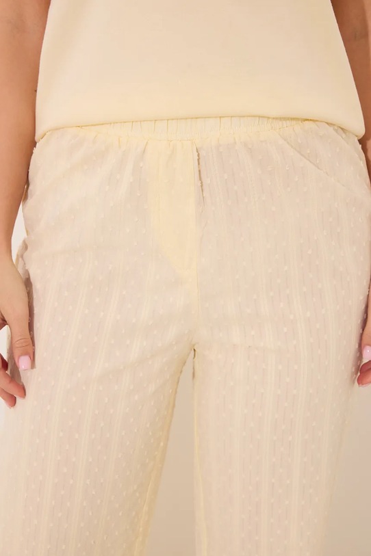 Пижама из коллекции Women'secret. Изготовлена из хлопкового трикотажа. – Инициатива «Лучший хлопок». Изделия с этой маркировкой содержат не менее 50% хлопка от розничного продавца или бренда, участвующего в инициативе «Лучший хлопок» и инвестирующего в развитие BCI. - Простой дизайн, не стесняющий движений. - Пижама включает в себя футболку и штаны. - Короткий рукав. - Декоративный, заостренный вырез. - Эластичный пояс. - Тонкий материал.