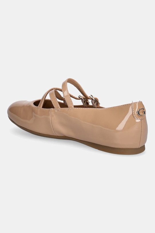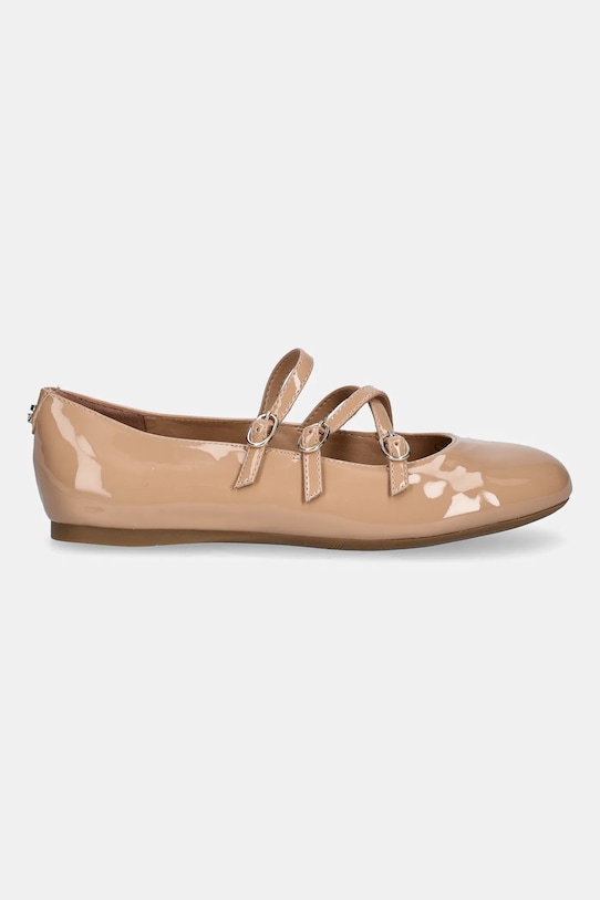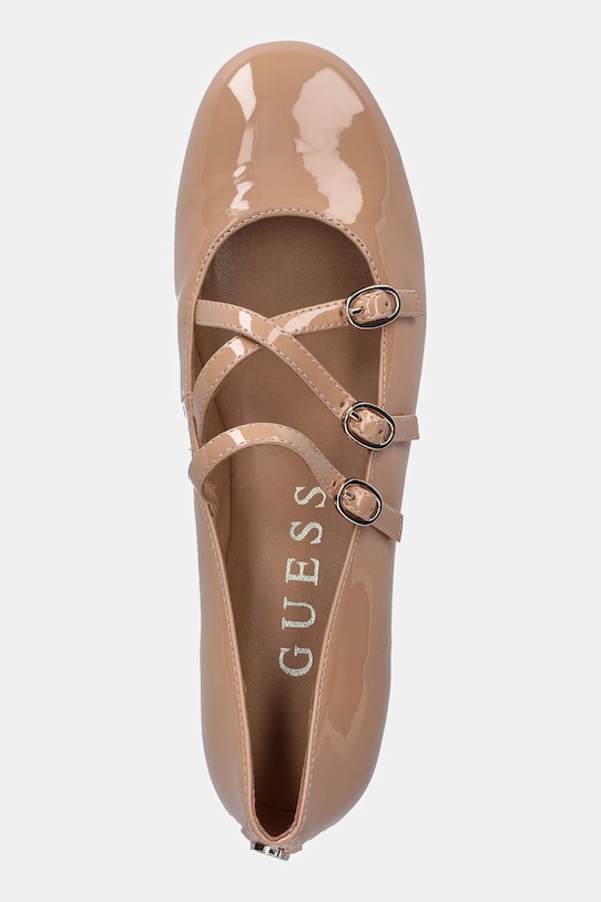 Эти балетки Guess изготовлены из искусственной лакированной кожи. Верх из непористой ткани легко чистится влажной тканью. - Круглый, слегка утолщенный носок. - Мягкий задник защищает пятку от истирания. - Застежка-пряжка со штифтом для индивидуальной подгонки. - Профилированная, мягкая стелька гарантирует комфорт использования. - Резиновая подошва прочная и устойчивая к повреждениям. - Длина вставки: 23 см. - Размеры указаны для размера: 37.