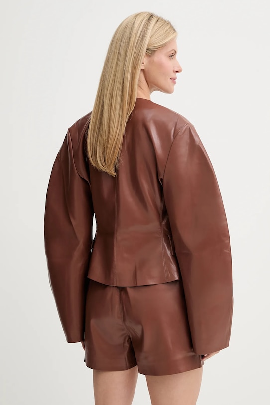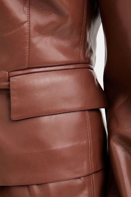 Куртка из коллекции Nanushka. Модель без подкладки выполнена из искусственной кожи. Слегка тянущийся материал обеспечивает полную свободу движений. - Данное изделие частично изготовлено из переработанного полиэстера. - Простой дизайн, не стесняющий движений. - Застежка-кнопка. - Неутепленная модель с подкладкой. - Модель с карманами, декорированными клапанами. - Длина: 55 см. - Ширина под мышками: 44 см. - Размеры указаны для размера: S.