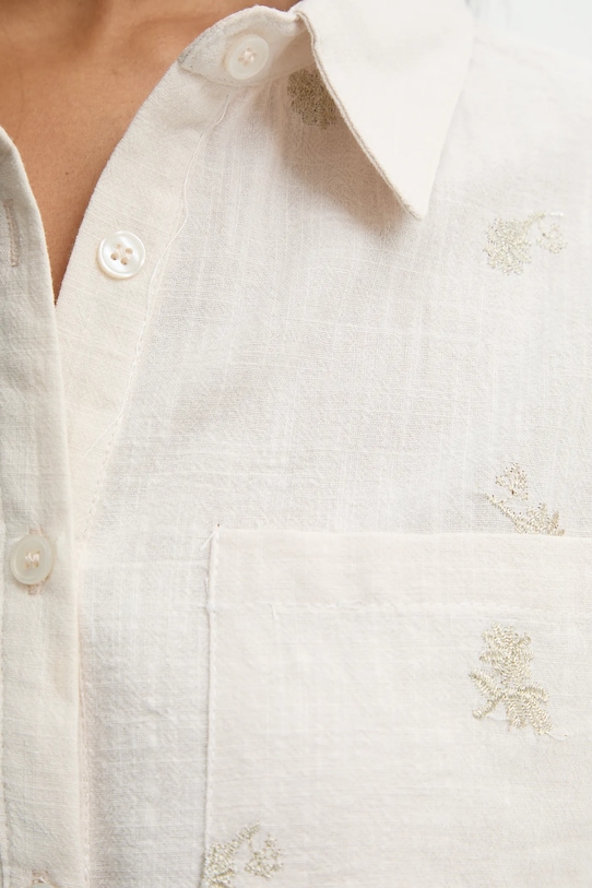 Эта рубашка Answear.LAB выполнена из тонкой, неэластичной ткани. Модель выполнена из дышащего хлопкового материала. - Рубашка свободного кроя отличается свободным кроем, обеспечивает комфорт и не стесняет движений. - Застежка на пуговицы. - Модель с воротником. - Нагрудные карманы. - Модель с декоративной вышивкой. - Длинный рукав. - Ширина под мышками: 50 см. - Длина спереди: 62 см. - Длина спинки: 71 см. - Указаны размеры: S/M.
