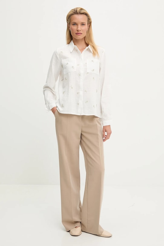 Эта рубашка Answear.LAB выполнена из тонкой, неэластичной ткани. Модель выполнена из дышащего хлопкового материала. - Рубашка свободного кроя отличается свободным кроем, обеспечивает комфорт и не стесняет движений. - Застежка на пуговицы. - Модель с воротником. - Нагрудные карманы. - Модель с декоративной вышивкой. - Длинный рукав. - Ширина под мышками: 50 см. - Длина спереди: 62 см. - Длина спинки: 71 см. - Указаны размеры: S/M.