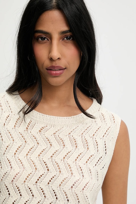 Эта блузка из коллекции Answear.LAB выполнена из ажурной ткани. Модель выполнена из эластичного материала, который адаптируется к форме тела. - Простой дизайн, не стесняющий движений. - Классический круглый вырез. - Нерегулируемые лямки не соскальзывают с плеч, обеспечивая комфорт во время занятий. - Модель с декоративной бахромой. - Трикотаж средней толщины. - Длина: 60 см. - Ширина под мышками: 46 см. - Размеры указаны для размера: S.