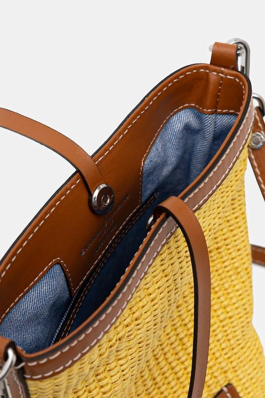 Небольшая сумка-ведро из коллекции Gianni Chiarini. Модель на молнии, выполнена из тканого материала. - Имеет ручку и съемный регулируемый ремень. - Отделение застегивается на магнит. - Внутренний накладной карман. - Усиленное дно сумки позволяет изделию долго сохранять форму. - Не подходит для формата А4. - Входящий в комплект тканевый чехол защищает изделие от пыли. - Ширина у основания: 13 см. - Высота: 20 см. - Глубина: 10 см.