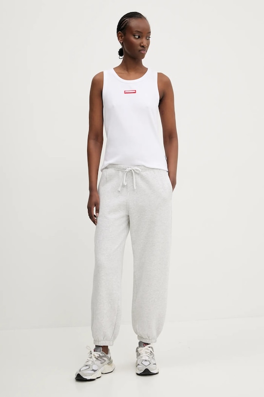 Спортивные брюки из коллекции Hollister Co. Изготовлены из слегка эластичной ткани, мягкая подкладка обеспечивает высокий комфорт. - Эластичный пояс со шнурками. - Ножки отделаны узкой эластичной манжетой. - Два боковых накладных кармана. - Мягкая внутренняя отделка повышает комфорт использования. - Ширина талии: 35 см. - Ширина бедер: 50 см. - Высота талии: 27,5 см. - Длина по внутреннему шву: 67 см. - Размеры указаны для размера: S.