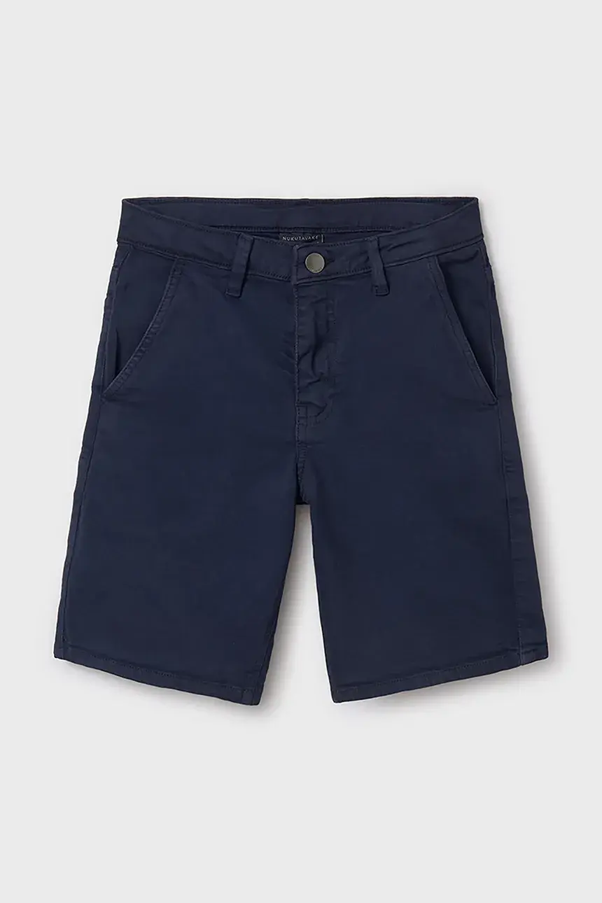 Детские шорты из коллекции Mayoral. Изготовлены из гладкой ткани, исключительно комфортной в использовании, с высоким содержанием хлопка. – Инициатива «Лучший хлопок». Изделия с этой маркировкой содержат не менее 50% хлопка от розничного продавца или бренда, участвующего в инициативе «Лучший хлопок» и инвестирующего в развитие BCI. - Простой дизайн, не стесняющий движений. - Накладные карманы. - Обхват талии обычный. - Застежка на пуговицы и молнию.