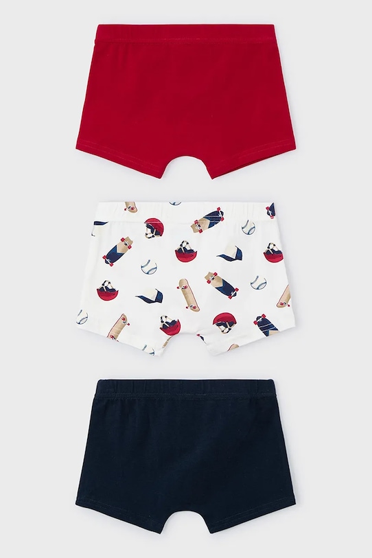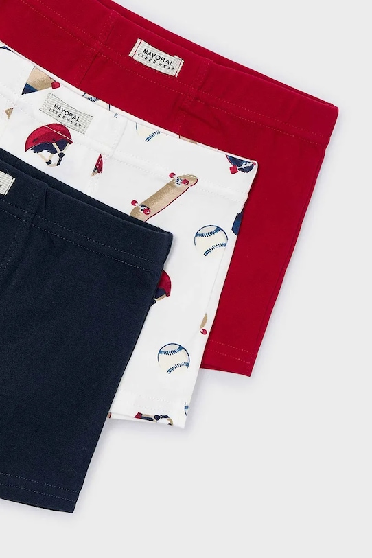 Детские трусы-боксеры из коллекции Mayoral. Изготовлены из тонкого эластичного трикотажа. Комплект из трёх пар. - Модель выполнена из мягкого, приятного для кожи трикотажа с высоким содержанием хлопка, который отличается исключительной воздухопроницаемостью, прочностью и отличными гигроскопичными свойствами. - Средняя посадка на талии с эластичным поясом предотвращает сползание во время движения. - Дополнительный слой материала в виде подкладки спереди.