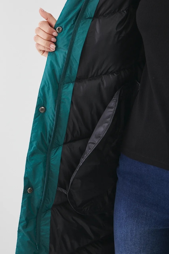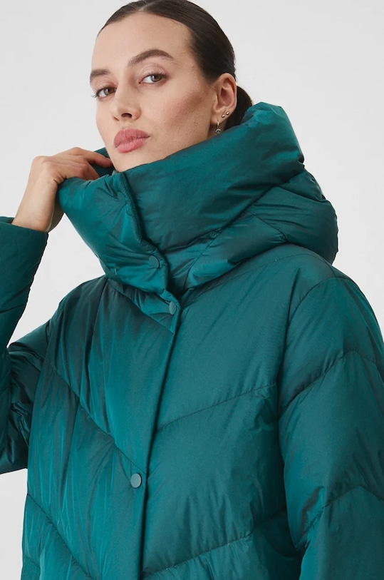 Пуховик из коллекции Medicine. Утеплённая модель выполнена из стёганого материала. - Обычная посадка. - Застежка-молния и кнопки. - Поднятый воротник. - Несъемный капюшон. - Внешние накладные карманы. - Утепленная модель с подкладкой. - Наполнитель - натуральный пух и перья. - Стеганая модель. - Длина рукава: 64,3 см. - Длина: 106 см. - Ширина под мышками: 56 см. - Ширина плеч: 44 см. - Размеры указаны для размера: S.