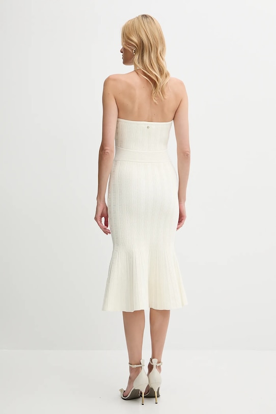 Это платье из коллекции Guess выполнено из эластичного трикотажа. Модель выполнена из исключительно комфортного материала с высоким содержанием вискозы. - Приталенный крой, подчеркивающий силуэт. - Модель с открытой спиной. - Верхний край покрыт силиконом, что предотвращает скольжение платья. - Эластичный трикотаж средней плотности. - Ширина под мышками: 36 см. - Ширина талии: 32 см. - Длина: 110 см. - Размеры указаны для размера: S.