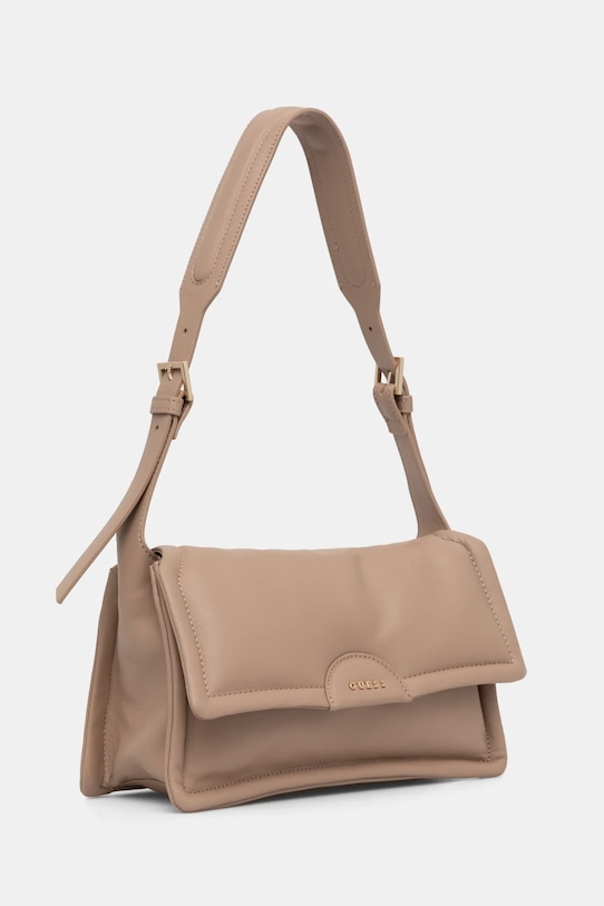 Небольшая сумочка из коллекции Guess. Модель на молнии, выполнена из натуральной кожи. - Клапан застегивается на магнит. - Модель на подкладке. - Не подходит для формата А4. - Входящий в комплект тканевый чехол защищает изделие от пыли. - Модель с двумя регулируемыми съемными лямками. - Количество слотов для карт: 1. - Количество внутренних накладных карманов: 1. - Глубина: 10 см. - Высота: 16 см. - Ширина у основания: 25 см.