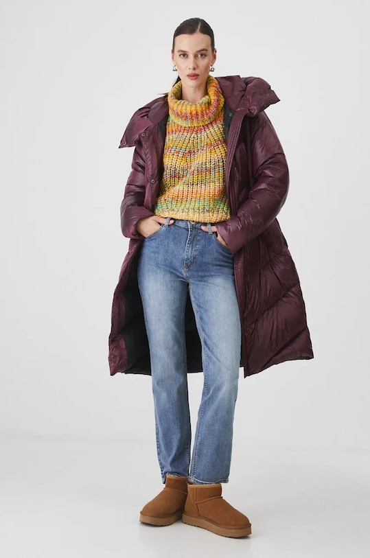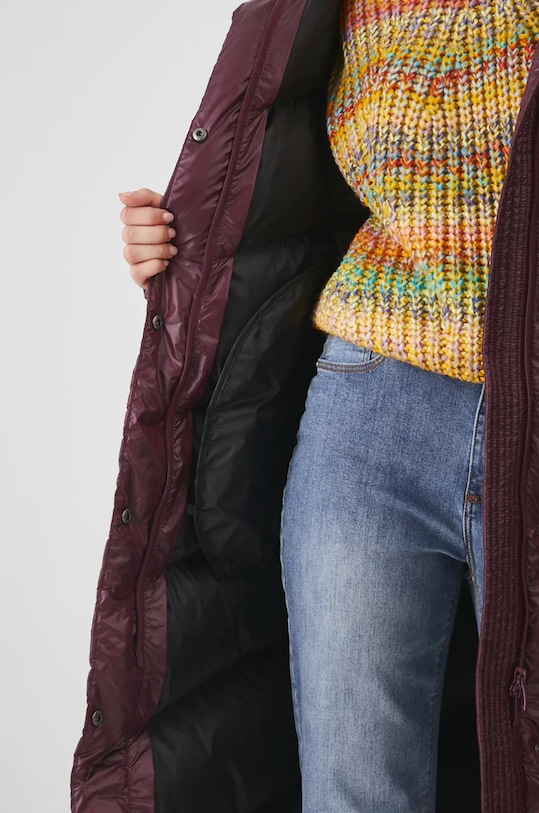 Пуховик из коллекции Medicine. Утеплённая модель выполнена из стёганого материала. - Обычная посадка. - Застежка-молния и кнопки. - Поднятый воротник. - Несъемный капюшон. - Внешние накладные карманы. - Утепленная модель с подкладкой. - Наполнитель - натуральный пух и перья. - Стеганая модель. - Длина рукава: 64,3 см. - Длина: 106 см. - Ширина под мышками: 56 см. - Ширина плеч: 44 см. - Размеры указаны для размера: S.