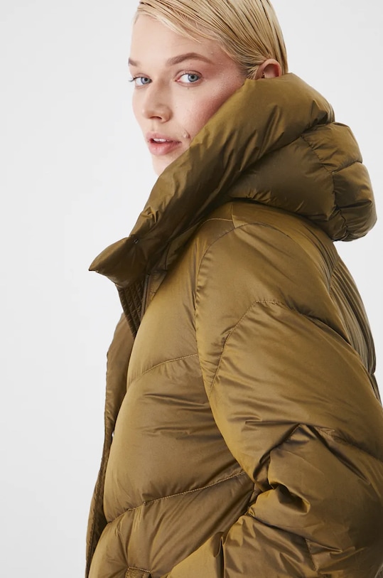 Пуховик из коллекции Medicine. Утеплённая модель выполнена из стёганого материала. - Обычная посадка. - Застежка-молния и кнопки. - Поднятый воротник. - Несъемный капюшон. - Внешние накладные карманы. - Утепленная модель с подкладкой. - Наполнитель - натуральный пух и перья. - Стеганая модель. - Длина рукава: 64,3 см. - Длина: 106 см. - Ширина под мышками: 56 см. - Ширина плеч: 44 см. - Размеры указаны для размера: S.