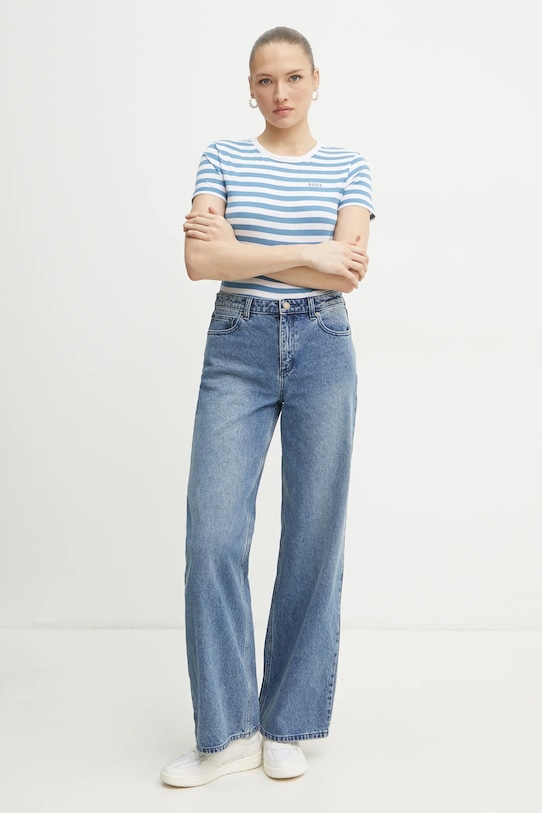 Футболка из коллекции BOSS Orange, выполненная из тонкой эластичной ткани. Эта модель выполнена из исключительно комфортного хлопкового материала. - Изделия линейки BETTER BOSS не менее чем на 60% изготовлены из материалов, полученных более экологичным способом. - Обычная посадка. - Классический круглый вырез. - Короткий рукав. - Узорчатое трикотажное полотно. - Длина: 60 см. - Ширина под мышками: 42 см. - Размеры указаны для размера: S.