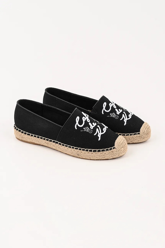 Эспадрильи из коллекции Karl Lagerfeld. Эти лёгкие и удобные туфли из прочного парусинового материала идеально подойдут для повседневной носки. - Круглый, слегка утолщенный носок. - Текстильная внутренняя часть комфортна для ног и облегчает содержание обуви в чистоте. - Удобная стелька. - Жесткий задник стабилизирует пятку и удерживает ногу в обуви, не давая ей выскальзывать во время движения. - Резиновая подошва прочная и устойчивая к повреждениям.