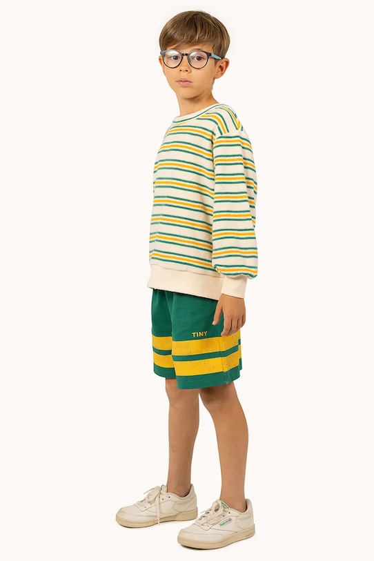 Детские шорты из коллекции Tinycottons. Изготовлены из слегка эластичной ткани для комфорта и свободы движений. Приятный хлопковый материал. - Простой дизайн, не стесняющий движений. - Обхват талии обычный. - Эластичный пояс. - Завязки на талии. - Модель с принтом. - Этот продукт изготовлен из сертифицированного органического хлопка, который выращен и собран из растений, не содержащих ГМО, без использования химических удобрений и пестицидов.