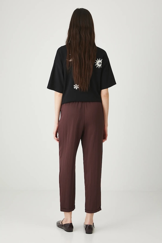 Брюки из коллекции «Медицина». Изготовлены из гладкой ткани. - Стиль «Чино». - Обхват талии обычный. - Эластичный пояс со шнурками. - Накладные карманы. - Укороченная нога. - Гладкая ткань. - Ширина талии (до растягивания): 37 см. - Ширина талии (после растяжения): 46 см. - Ширина бедер: 50 см. - Высота талии: 29,5 см. - Ширина штанины внизу: 17 см. - Длина по внутреннему шву: 68 см. - Размеры указаны для размера: S.