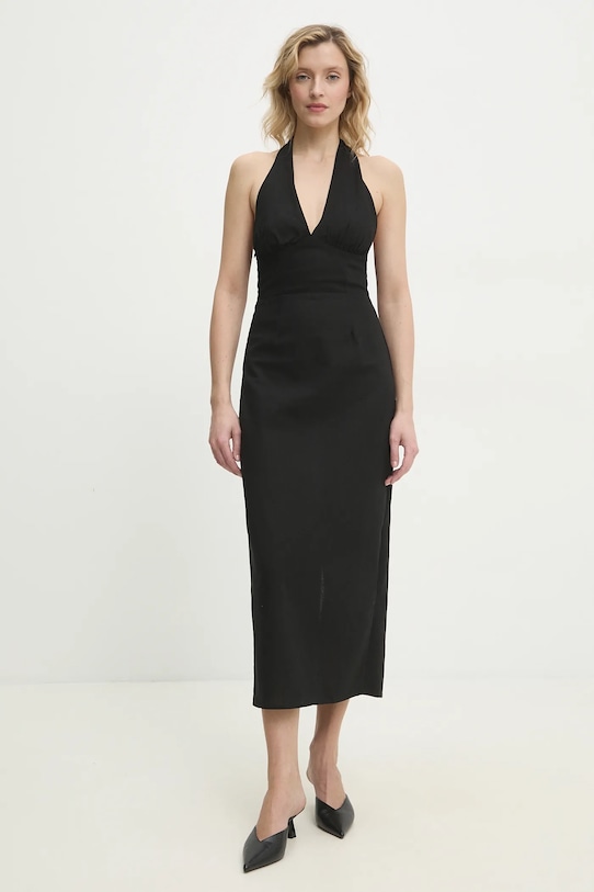 Платье из коллекции Answear.LAB, выполненное из тонкой, неэластичной ткани. Эта модель выполнена из исключительно дышащего, высококачественного материала. - Расклешенный крой. - Нерегулируемые, несъемные лямки с застежкой на шее. - Удобная боковая застежка на короткую молнию позволяет легко надевать и снимать. - Модель без подкладки. - Впечатляющий крой. - Длина: 129 см. - Ширина под мышками: 40 см. - Размеры указаны для размера: S.