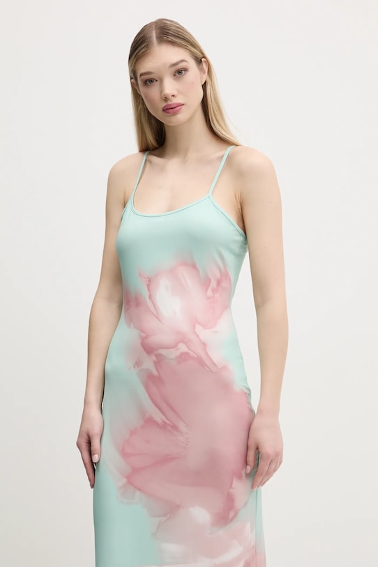 Это платье из коллекции Desigual выполнено из тонкого, высокоэластичного трикотажа. Содержание полиэстера делает ткань менее мнущейся. - Приталенный верх и расклешенный низ. - Модель без подкладки. - Классический круглый вырез. - Регулируемые бретели обеспечивают оптимальную поддержку груди и позволяют индивидуально подогнать по фигуре, не раздражая кожу на плечах. - Впечатляющий крой. - Модель без застежки. - Узорчатое трикотажное полотно.