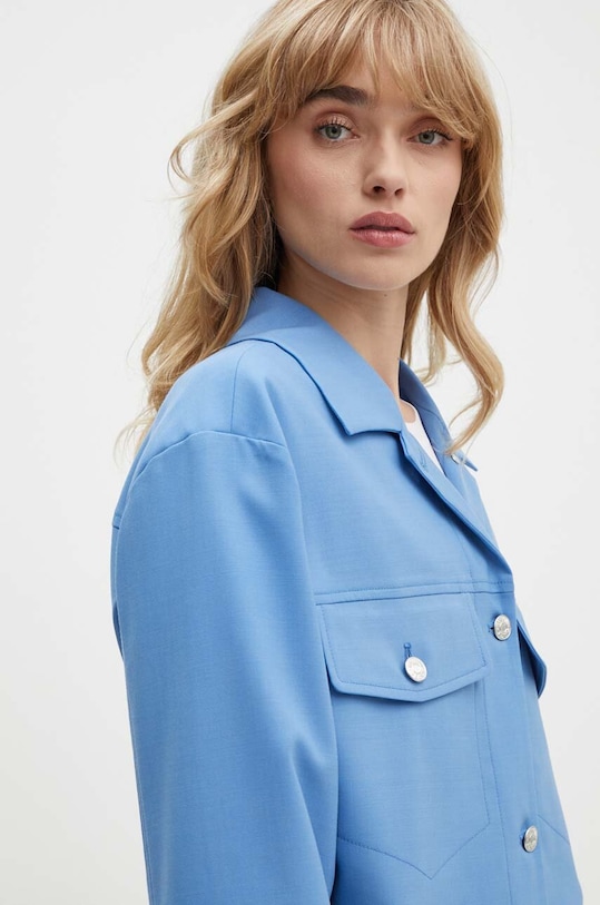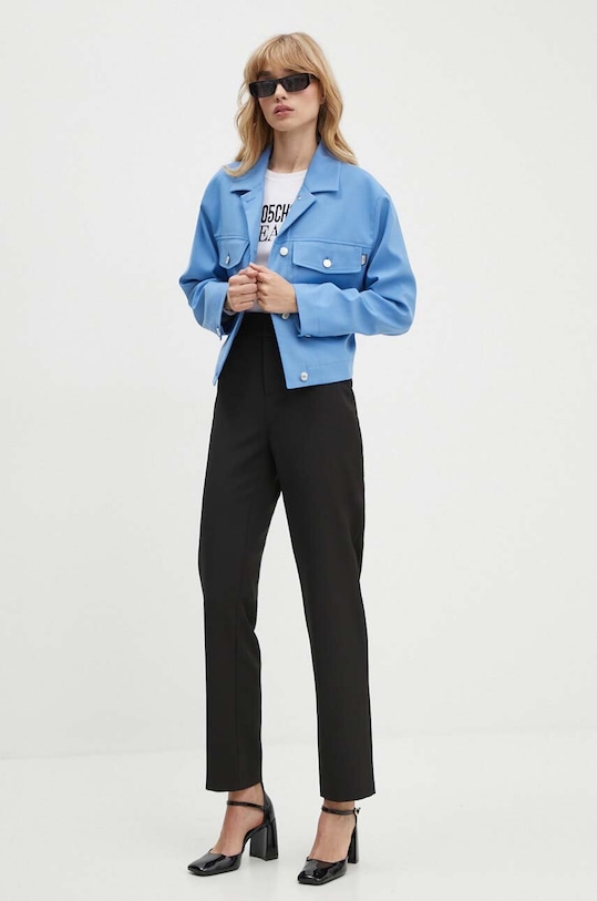 Эта куртка из коллекции Moschino Jeans. Эта переходная модель выполнена из гладкого материала. Содержание полиэстера делает её менее мнущейся. - Простой дизайн, не стесняющий движений. - Неутепленная модель с подкладкой. - Застежка на пуговицы. - Манжеты на пуговицах. - Два нагрудных кармана с застежкой на пуговицы. - Длина рукава (от воротника): 71 см. - Длина: 52 см. - Ширина под мышками: 47 см. - Размеры указаны для размера: 36.