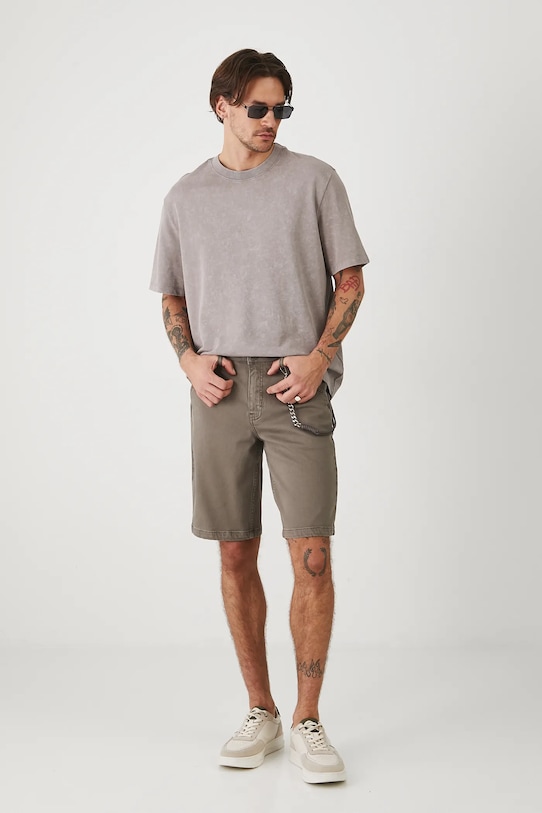 Шорты из коллекции Medicine. Изготовлены из стираного денима. - Обычная посадка. - Обхват талии обычный. - Застежка на пуговицы и молнию. - Накладные карманы. - Контрастная строчка. - Декоративная цепочка с карабином. - Слегка выстиранный деним. - Ширина талии: 41,5 см. - Ширина бедер: 54 см. - Высота талии: 27,7 см. - Ширина штанины внизу: 26 см. - Длина по внутреннему шву: 28 см. - Размеры указаны для размера: 31.
