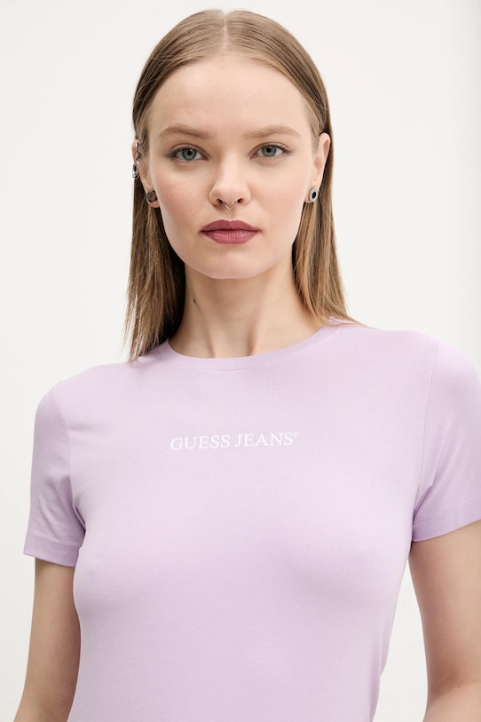 Эта футболка из коллекции Guess Jeans выполнена из тонкой, эластичной ткани с высоким содержанием хлопка. - Продукция GUESS JEANS разрабатывается таким образом, чтобы производить как можно меньше отходов без ущерба для качества и долговечности. - Приталенный крой, подчеркивающий силуэт. - Короткий рукав. - Классический круглый вырез. - Модель с принтом. - Длина: 56 см. - Ширина под мышками: 41 см. - Размеры указаны для размера: S.
