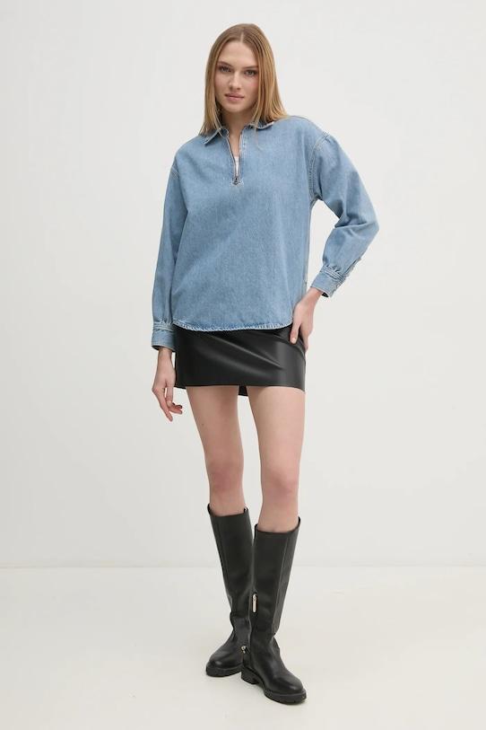 Эта блузка из коллекции Pepe Jeans выполнена из денима. Модель выполнена из исключительно комфортной хлопковой ткани. - Модель из линейки Pepe Future, в которую входят изделия, изготовленные в ходе экологически устойчивого производства. - Обычная посадка. - Застежка на короткую молнию. - Манжеты застегиваются на кнопки. - Длина рукава (от воротника): 70 см. - Длина: 64 см. - Ширина под мышками: 52 см. - Размеры указаны для размера: S.