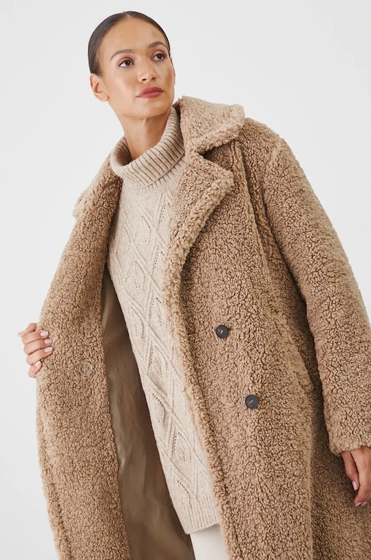 Двубортное пальто из коллекции Medicine. Переходный фасон, выполненный из искусственного меха. - Большой размер. - Длинный рукав. - Двубортный пиджак с застежкой на пуговицы. - Классические лацканы. - Два боковых накладных кармана. - Модель выполнена из искусственного меха. - Модель на подкладке. - Материал с текстурой. - Длина рукава: 60,5 см. - Длина: 125,5 см. - Ширина груди: 54 см. - Размеры указаны для размера: S.