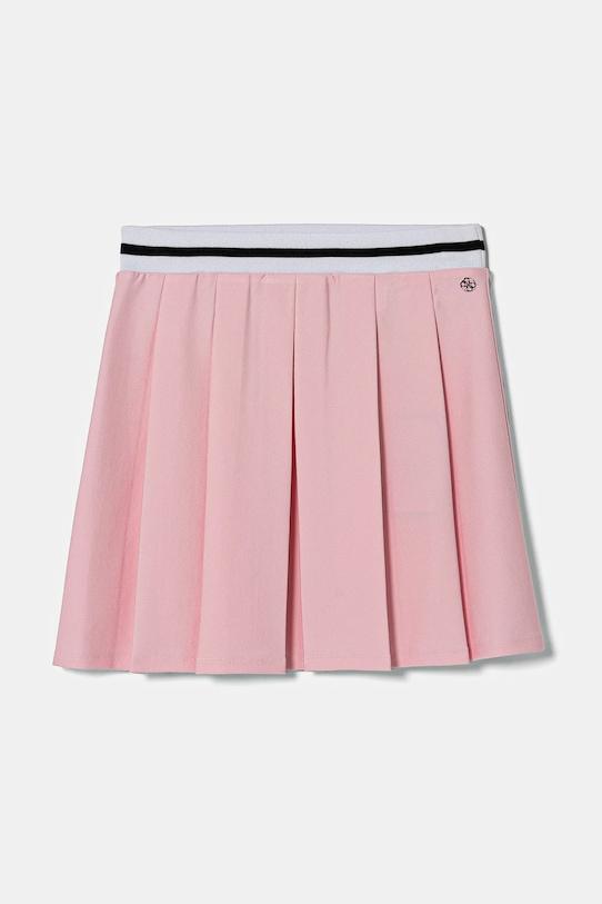 Детская юбка из коллекции Guess выполнена из тонкой эластичной ткани. Модель выполнена из дышащего материала с высоким содержанием вискозы. - Изготовлено из экологически чистого материала LENZING ECOVERO. LENZING ECOVERO производится из органической целлюлозы и древесной массы, используя на 50% меньше воды, чем популярная вискоза. - Расклешенный крой. - Высокая талия с резинкой предотвращает скольжение во время движения. - Декоративные закладки.