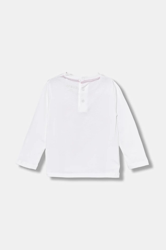 Детский лонгслив из коллекции Guess. Изготовлен из тонкого эластичного трикотажа. Изготовлен из дышащего хлопкового материала. - В состав продукта входят волокна органического хлопка, выращенного без использования вредных химикатов, химических пестицидов и искусственных удобрений. - Простой дизайн, не стесняющий движений. - Круглый ребристый вырез. - Длинный рукав. - Застегивается на короткую кнопку. - Графический логотип бренда спереди.