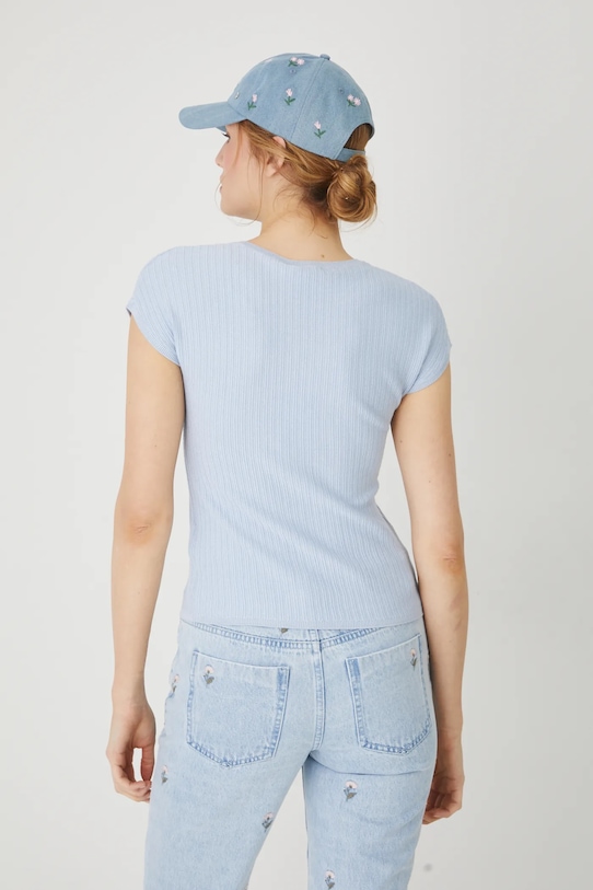 Футболка из коллекции «Медицина». Изготовлена из трикотажной ткани в рубчик. - Материал с сертификатом OEKO-TEX Standard 100 гарантирует, что текстильные изделия, на которых он нанесен, не содержат вредных и потенциально опасных для человека и окружающей среды веществ. - Приталенный крой. - Короткие рукава кимоно. - Круглый вырез. - Трикотажное полотно в рубчик. - Длина: 53 см. - Ширина груди: 39 см. - Размеры указаны для размера: S.