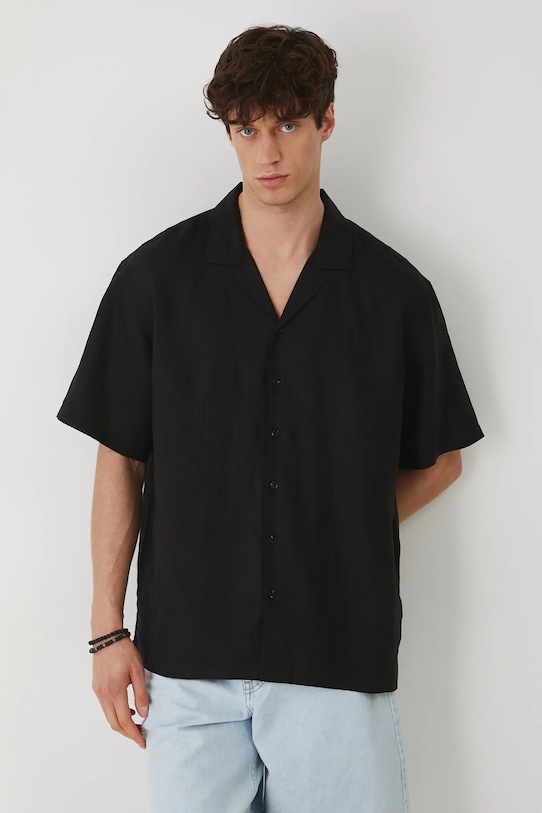 Эта рубашка из коллекции Medicine. Она сшита из льна и имеет воротник-стойку. - Натуральный, воздушный и прочный материал, изготовлен из 100% льна. - Рубашка свободного кроя отличается свободным кроем, обеспечивает комфорт и не стесняет движений. - Короткий рукав. - Мягкий курортный воротник. - Застежка на пуговицы. - Гладкая ткань. - Длина: 76 см. - Ширина груди: 59 см. - Ширина плеч: 54 см. - Размеры указаны для размера: L.