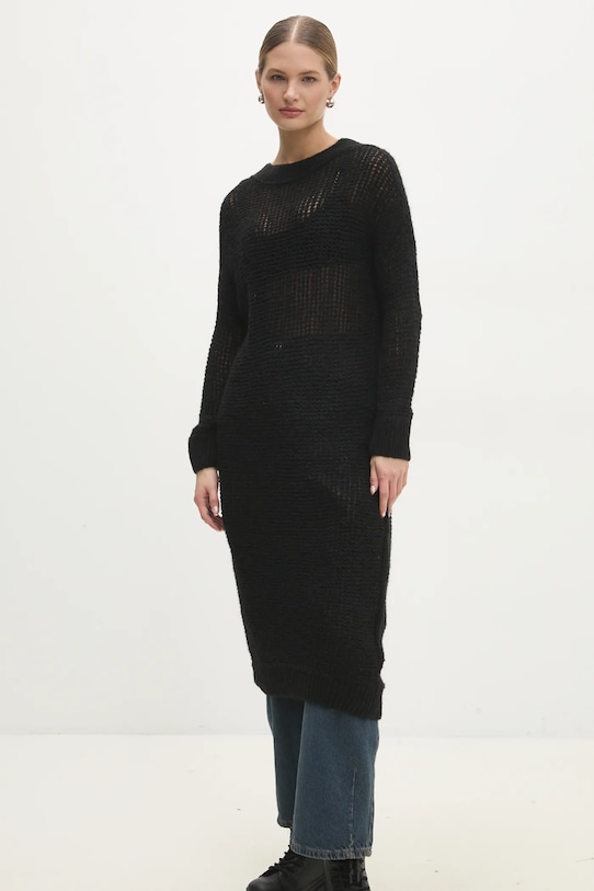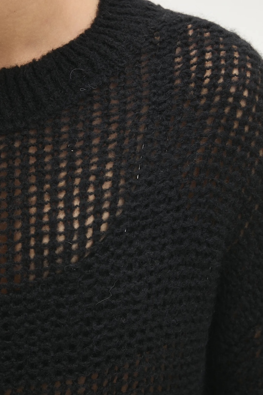 Свитер из коллекции Answear.LAB, выполненный из ажурного трикотажа. Доступен эксклюзивно на Answear.com. - Свободный крой, обеспечивающий полную свободу движений. - Классический круглый вырез. - Крой рукава со спущенной линией плеча не ограничивает подвижность. - Рукава и нижний край отделаны удобными эластичными манжетами. - Длина рукава (от горловины): 76 см. - Длина: 120 см. - Ширина под мышками: 50 см. - Указаны размеры: S/M.