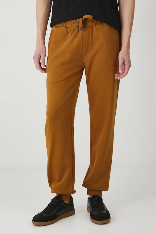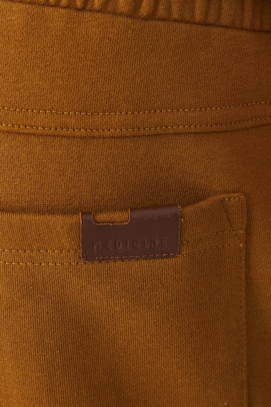 Брюки из коллекции «Медицина». Изготовлены из гладкого трикотажа. - Стиль бега трусцой. - Обхват талии обычный. - Эластичный пояс со шнурками. - Накладные карманы. - Ножки отделаны манжетами. - Гладкая трикотажная ткань. - Ширина талии (до растягивания): 42 см. - Ширина талии (после растяжения): 54 см. - Ширина бедер: 57 см. - Высота талии: 29,8 см. - Длина по внутреннему шву: 73 см. - Размеры указаны для размера: L.