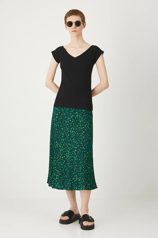 Футболка из коллекции «Медицина». Изготовлена из трикотажной ткани в рубчик. - Материал с сертификатом OEKO-TEX Standard 100 гарантирует, что текстильные изделия, на которых он нанесен, не содержат вредных и потенциально опасных для человека и окружающей среды веществ. - Приталенный крой. - Короткие рукава реглан. - Острый вырез. - Трикотажное полотно в рубчик. - Длина: 58 см. - Ширина груди: 38 см. - Размеры указаны для размера: S.