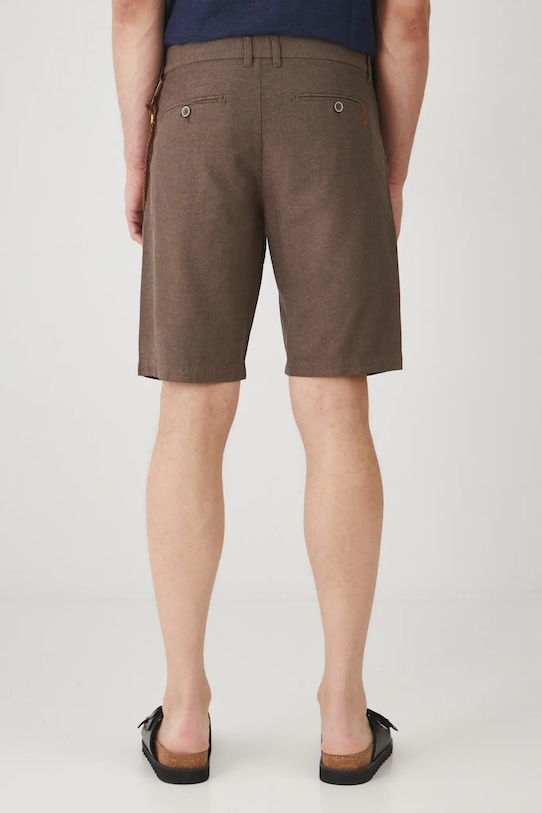 Шорты из коллекции Medicine. Изготовлены из смеси льна и хлопка. - Обычная посадка. - Обхват талии обычный. - Застежка на пуговицы и молнию. - Накладные карманы. - Декоративные закладки. - Декоративная деталь с карабином. - Меланжевая ткань. - Ширина талии: 44,8 см. - Ширина бедер: 57 см. - Высота талии: 27,2 см. - Ширина штанины внизу: 25,9 см. - Длина по внутреннему шву: 26 см - Размеры указаны для размера: L.