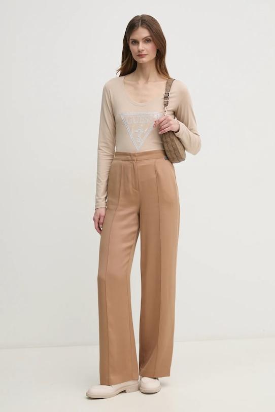 Лонгслив из коллекции Guess, выполненный из трикотажного полотна с аппликацией. Модель выполнена из исключительно комфортного материала с высоким содержанием хлопка. - Этот продукт частично изготовлен из органического хлопка. - Простой дизайн, не стесняющий движений. - Классический круглый вырез. - Тонкий, эластичный трикотаж. - Длина рукава: 60 см. - Длина: 60 см. - Размеры указаны для размера: S. - Ширина под мышками: 42 см.