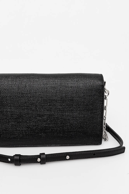Небольшая сумочка из коллекции Calvin Klein. Модель на молнии, выполнена из экокожи. - Поворотная застежка. - Имеет три отделения, одно из которых застегивается на молнию. - Имеет внутренние отделения для карт. - Модель на подкладке. - Не подходит для формата А4. - Несъемный, регулируемый ремешок. - Входящий в комплект тканевый чехол защищает изделие от пыли. - Глубина: 7 см. - Высота: 14,5 см. - Ширина у основания: 24 см.