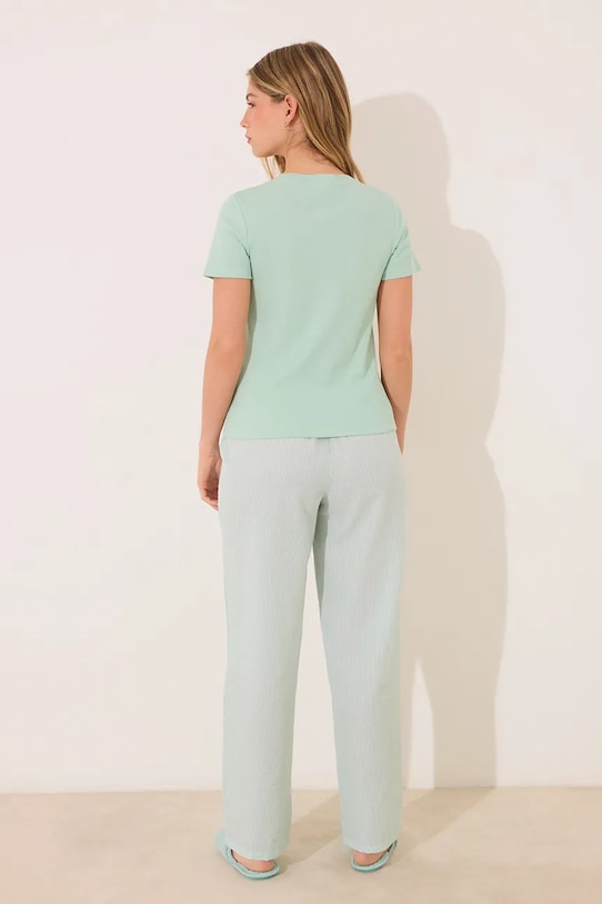 Пижамный комплект - футболка и брюки из коллекции Women'secret. Изготовлен из хлопка. – Инициатива «Лучший хлопок». Изделия с этой маркировкой содержат не менее 50% хлопка от розничного продавца или бренда, участвующего в инициативе «Лучший хлопок» и инвестирующего в развитие BCI. - Простой дизайн, не стесняющий движений. - Пижама включает в себя футболку и штаны. - Классический круглый вырез. - Эластичный пояс. - Тонкий материал.