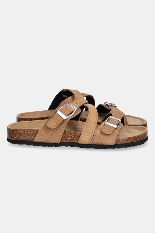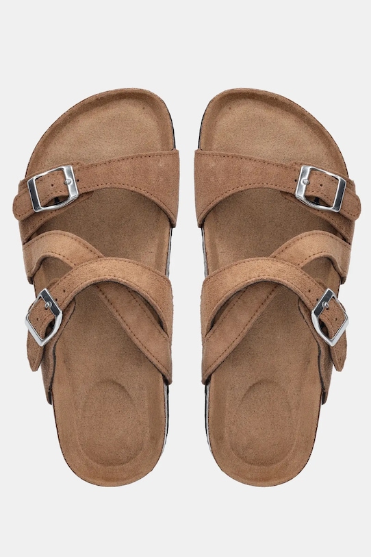 Эти шлёпанцы Answear.LAB изготовлены из замши. Эти лёгкие и удобные слипоны идеально подходят для повседневной носки. - Регулируемые ремешки обеспечивают оптимальную посадку по ноге. - Анатомическая стелька поддерживает свод стопы и обеспечивает длительный комфорт. - Текстильная внутренняя часть комфортна для ног и облегчает содержание обуви в чистоте. - Подошва из пеноматериала обеспечивает более мягкое ощущение и дополнительную амортизацию.