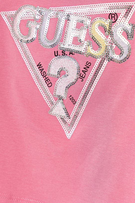 Детская футболка из коллекции Guess выполнена из тонкой, эластичной ткани. Модель выполнена из исключительно комфортного материала с высоким содержанием хлопка. - Органический хлопок выращивается без использования вредных химикатов, химических пестицидов и искусственных удобрений. - Простой дизайн, не стесняющий движений. - Классический круглый вырез. - Плоские швы защищают кожу от ссадин и раздражения. - Модель с аппликацией из пайеток.