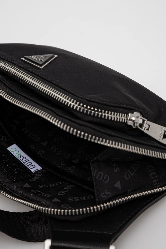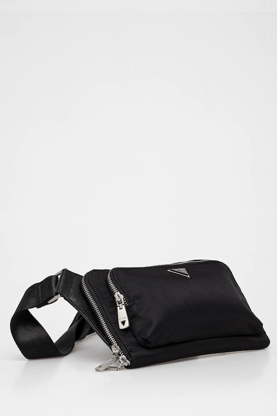 Поясная сумка из коллекции Guess. Изготовлена из текстильного материала. - Изделие содержит переработанные волокнистые материалы. - Несъемный регулируемый ремешок позволяет индивидуально подогнать посадку. - Два внешних кармана на молнии. - Внутренний накладной карман. - Карман на молнии сзади. - Не подходит для формата А4. - Количество слотов для карт: 3. - Ширина у основания: 21 см. - Высота: 13 см. - Глубина: 3 см.