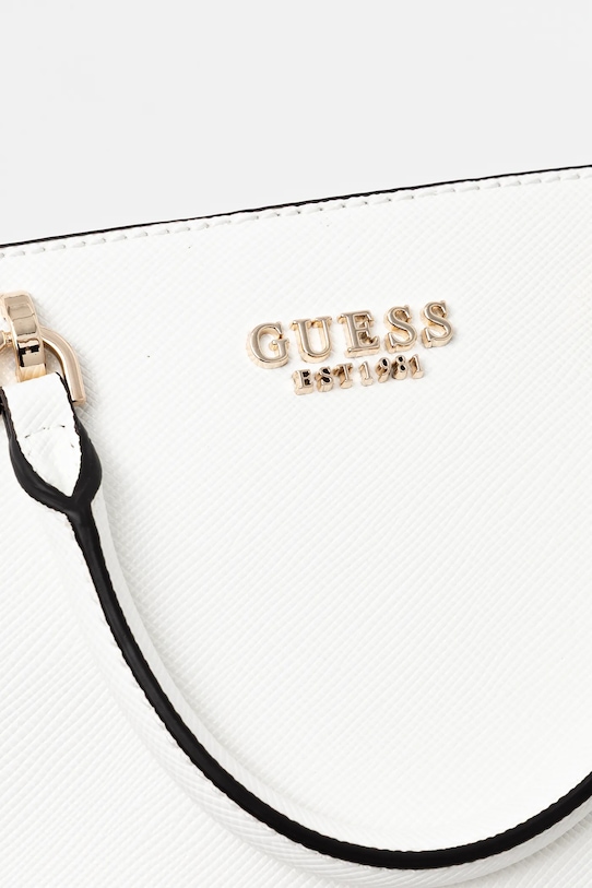 Сумка-тоут среднего размера из коллекции Guess. Модель на молнии выполнена из экокожи. - Имеет три отделения: одно на молнии, два на магнитной застежке. - Карман на молнии сзади. - Имеет ручки и съемный регулируемый ремень. - Три внутренних кармана: один на молнии, два накладных. - Не подходит для формата А4. - Ширина у основания: 27 см. - Высота: 21 см. - Глубина: 10 см. - Длина ручки: 27 см. - Длина ремешка: 105 см.