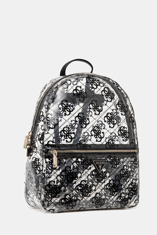 Рюкзак из коллекции Guess. Изготовлен из синтетического материала. - Застежка-молния. - Короткая ручка для удобной переноски в руке. - Регулируемая длина ремешка. - Входящий в комплект тканевый чехол защищает изделие от пыли. - Не подходит для формата А4. - Карман на молнии спереди. - Входящий в комплект мешочек позволит вам хранить необходимые предметы. - Глубина: 12 см. - Высота: 33 см. - Ширина у основания: 27 см.