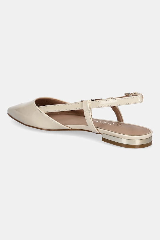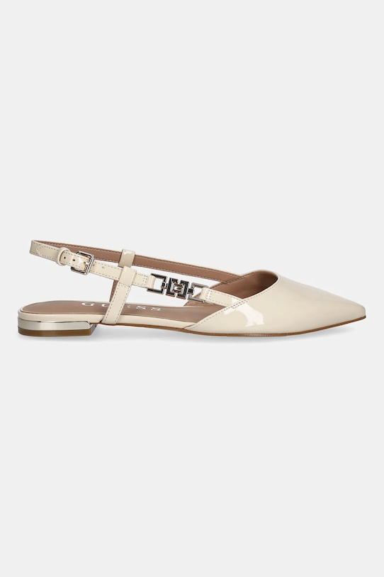 Эти балетки Guess изготовлены из искусственной лакированной кожи. Верх из непористой ткани легко чистится влажной тканью. - Заостренный, жесткий нос. - Модель с открытой пяткой. - Кожаная стелька комфортна для стопы и предотвращает натирание, потертости и появление неприятного запаха. - Резиновая подошва прочная и устойчивая к повреждениям. - Модель на плоской подошве. - Длина вставки: 23,5 см. - Размеры указаны для размера: 37.