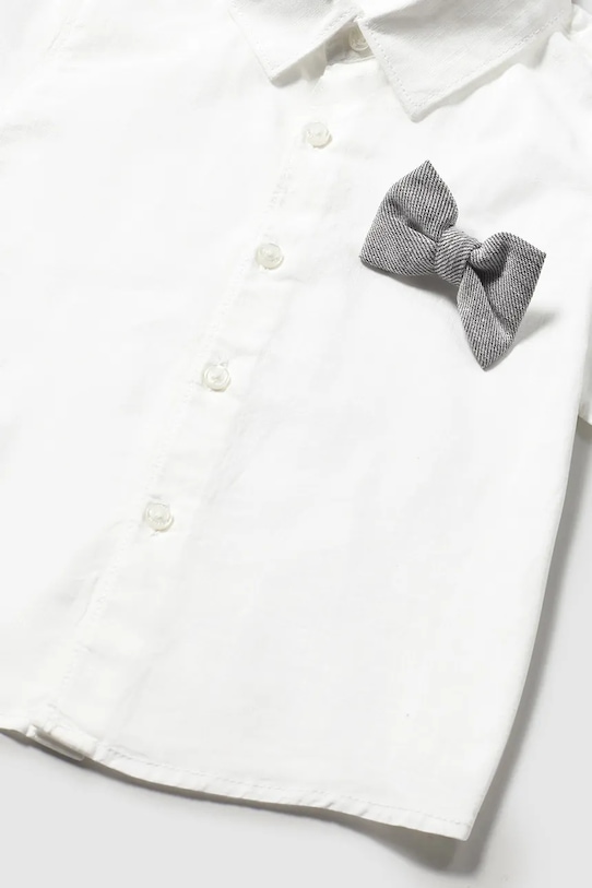 Этот детский комплект из коллекции Mayoral изготовлен из дышащей хлопковой ткани. - В комплект входят: рубашка, шорты и галстук-бабочка. - Простой дизайн, не стесняющий движений. - Короткий рукав. - Модель с воротником. - Застежка на пуговицы. – Инициатива «Лучший хлопок». Изделия с этой маркировкой содержат не менее 50% хлопка от розничного продавца или бренда, участвующего в инициативе «Лучший хлопок» и инвестирующего в развитие BCI.