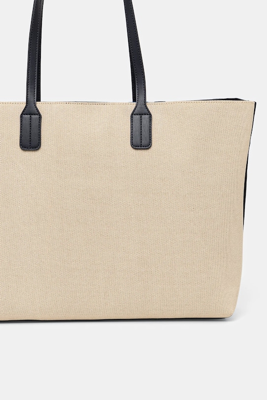 Большая сумка из коллекции Tommy Hilfiger. Модель на молнии, выполнена из текстильного материала. - Данное изделие частично изготовлено из переработанного полиэстера. - Магнитная застежка. - Имеет три отделения, одно из которых застегивается на молнию. - Внутренний карман на молнии. - Вмещает формат А4. - Длинные ручки для удобной переноски в руке или на плече. - Глубина: 13 см. - Высота: 33 см. - Ширина у основания: 41 см.