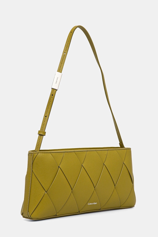 Небольшая сумочка из коллекции Calvin Klein. Модель на молнии, выполнена из экокожи. - Эта модель частично изготовлена из переработанного полиэстера. - Имеет регулируемую ручку. - Внутренний накладной карман. - Усиленное дно сумки позволяет изделию долго сохранять форму. - Не подходит для формата А4. - Входящий в комплект тканевый чехол защищает изделие от пыли. - Ширина у основания: 30 см. - Высота: 14 см. - Глубина: 5 см.