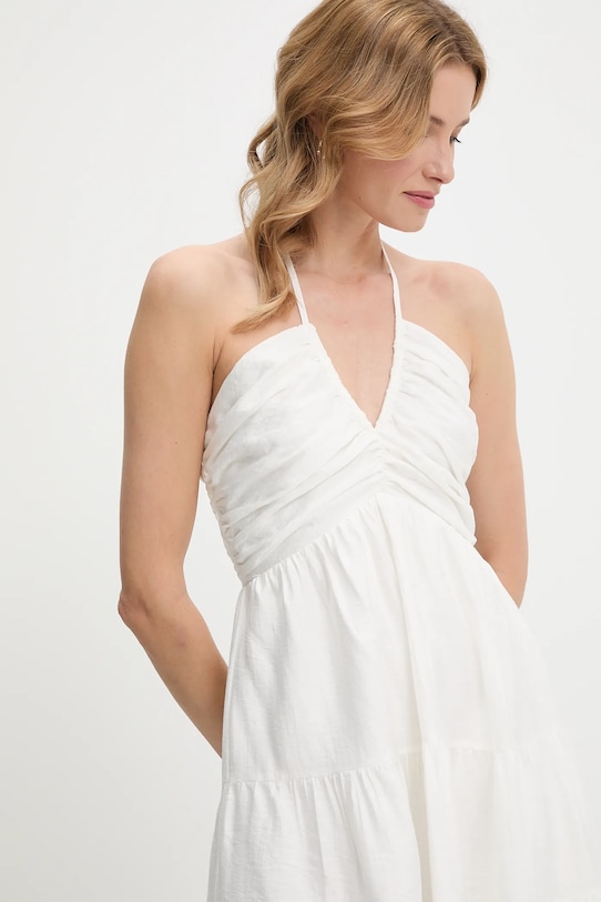 Это платье из коллекции Answear.LAB выполнено из тонкой, неэластичной ткани. Добавление полиамида обеспечивает большую прочность. - Расклешенный крой. - Нерегулируемые, несъемные бретели с завязками на шее. - Декоративный, заостренный вырез. - Эластичная вставка сзади. - Дополнительный слой материала в виде подкладки. - Модель без застежки. - Длина: 77 см. - Ширина под мышками: 35,5 см. - Размеры указаны для размера: S.
