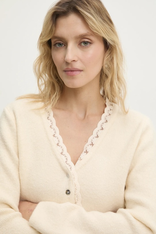 Этот кардиган из коллекции Answear.LAB выполнен из эластичного трикотажа средней плотности. Он мягкий и приятный на ощупь. - Простой дизайн, не стесняющий движений. - Длинный рукав. - Рукава и нижний край отделаны удобными эластичными манжетами. - Удобная застежка на кнопки позволяет легко надевать и снимать. - Кружевные вставки. - Длина рукава: 59 см. - Длина: 45 см. - Ширина под мышками: 51 см. - Указаны размеры: S/M.